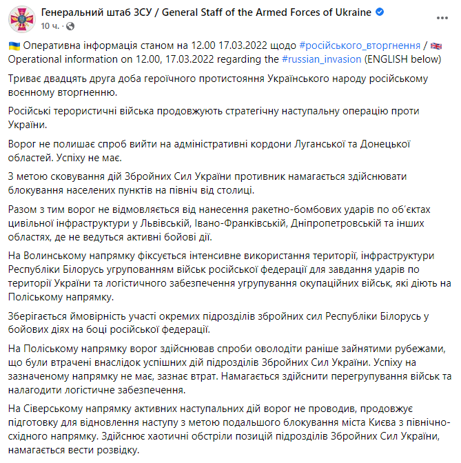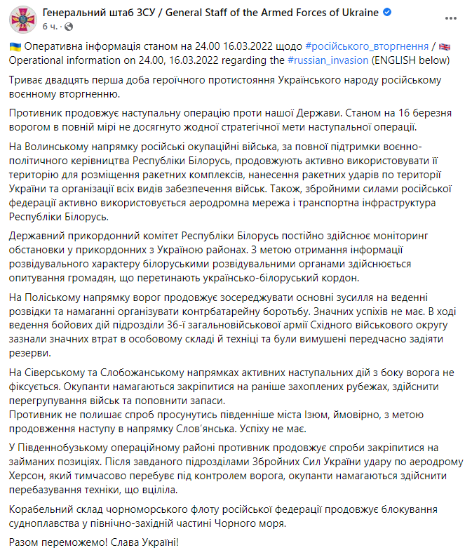00:00. Начало 22-го дня войны, 17 марта.
