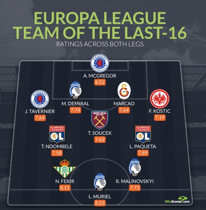 Украинский полузащитник «Аталанты» Руслан Малиновский вошел в символическую сборную 1/8 финала Лиги Европы по версии WhoScored. У него оценка 7,73.