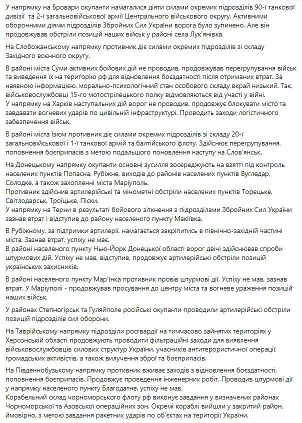 07:00. Сводка Генштаба: россияне пытаются прорвать оборону возле Киева