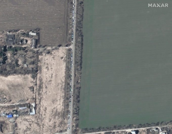 На фото также видно огромное количество автомобильного транспорта, стоящего на дороге неподалеку от Безыменного.
