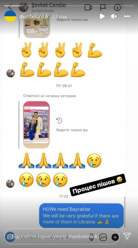 Привет. Нам нужны «Байрактары». Мы будем очень благодарны, если их будет больше для Украины», - написал Беленюк.
