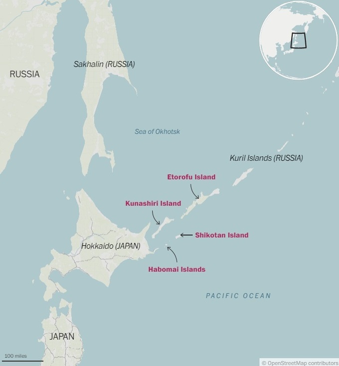 Эти вулканические острова к юго-востоку от российского острова Сахалин, разделяющие Охотское море и Тихий океан, лежат в основе послевоенных российско-японских отношений. Две страны сделали совместное заявление в 1956 году о прекращении состояния войны между ними, но не подписали мирный договор.