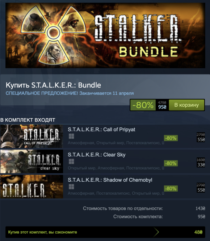 В Steam можно купить набор игр STALKER. Деньги пойдут на ВСУ