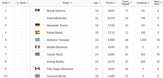 Все теннисисты после завершения карьеры остаются в рейтинге, пока рейтинг до нуля не упадет?