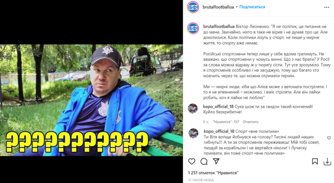 Бывший спортивный директор «Миная» Михаил Кополовец прокомментировал слова экс-футболиста Виктора Леоненко, который не считает, что не нужно наказывать российских спортсменов за вторжение армии рф в Украину.