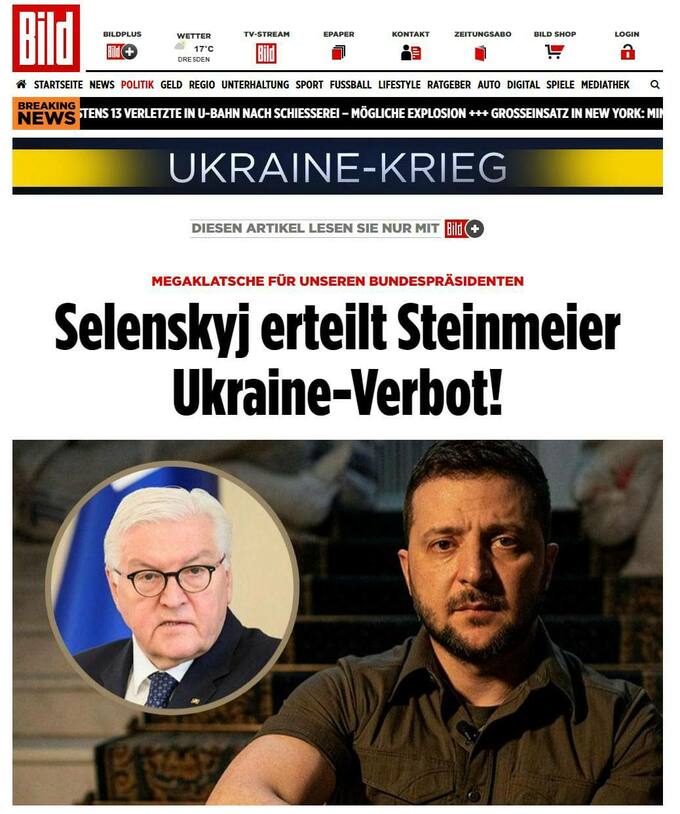 Немецкие СМИ, ссылаясь на украинские правительственные круги, сообщают о том, что в среду, 13 апреля президент Германии Франк-Вальтер Штайнмайер планировал посетить Украину вместе с правительственными делегациями из других стран ЕС.
