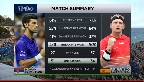 В стартовом для себя матче серб проиграл испанцу Алехандро Давидовичу-Фокине.