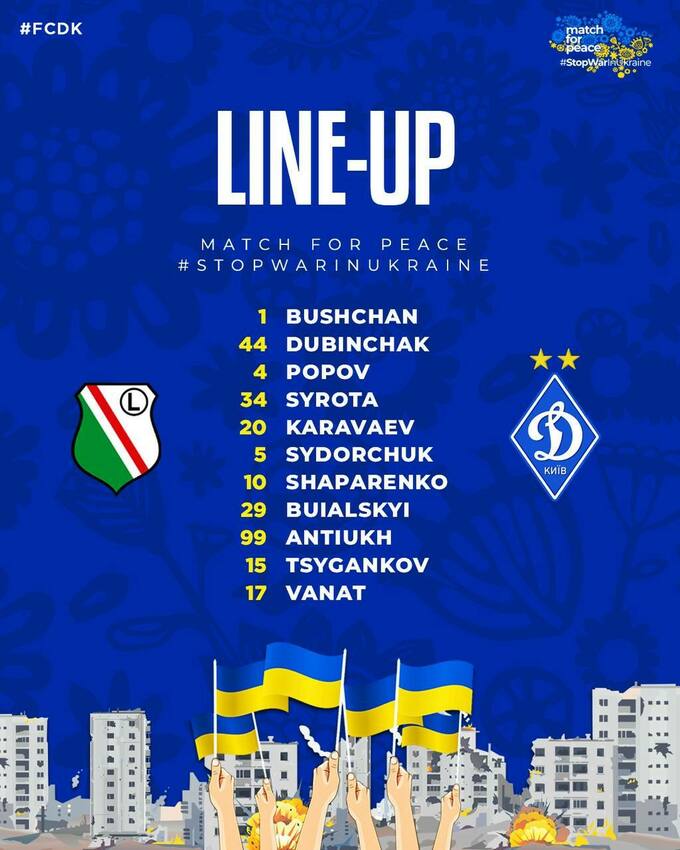 12 апреля состоится первый матч «Динамо» в рамках благотворительного турне в помощь Украине. Киевляне сыграют против «Легии».