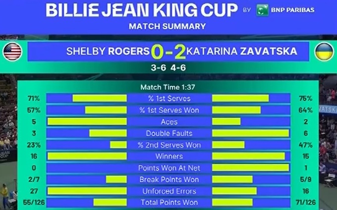 Второй номер сборной Украины Катарина Завацкая (№201 WTA) сравняла счет во встрече Квалификации Кубка Билли Джин Кинг против команды США.