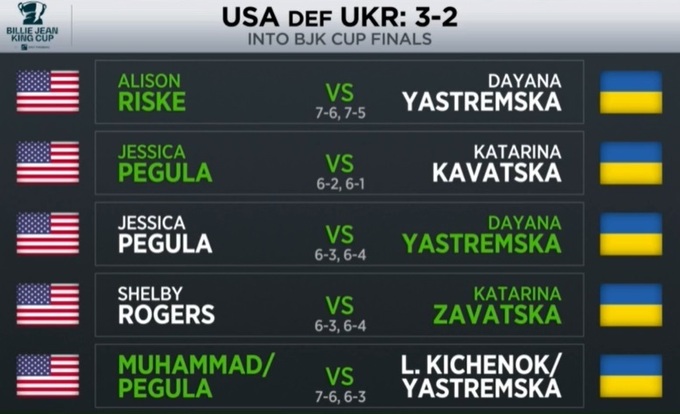 Состоялся заключительный пятый матч встречи Квалификации Кубка Билли Джин Кинг между командами США и Украины.