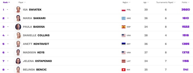 Украинки в Чемпионской гонке WTA