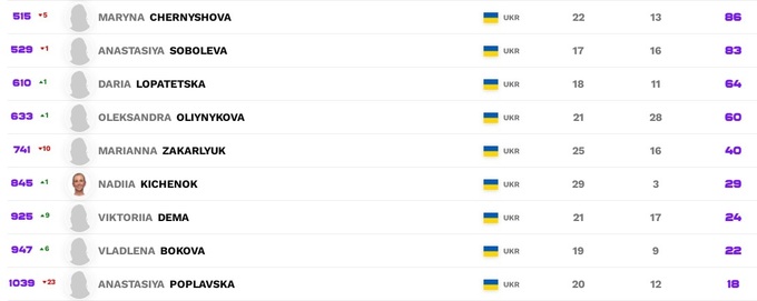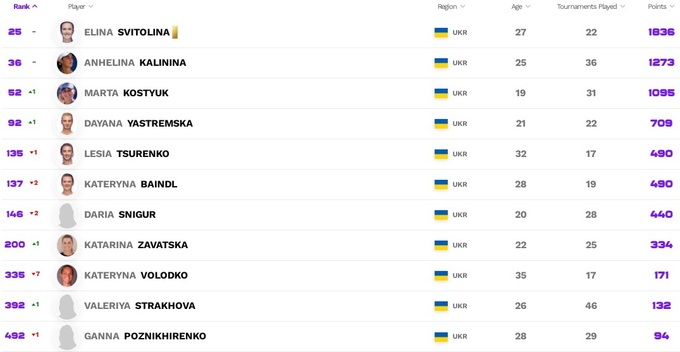 Что касается украинок, то Элина Свитолина и Ангелина Калинина сохранили позиции, Марта Костюк и Даяна Ястремская добавили по одной строчке. В топ-200 вернулась Катарина Завацкая, у остальных небольшие потери.