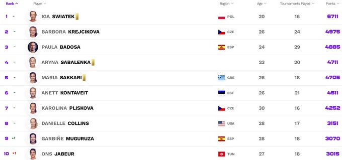 На прошлой неделе женщины сражались в рамках командных соревнований, поэтому изменения в рейтинге WTA минимальные.