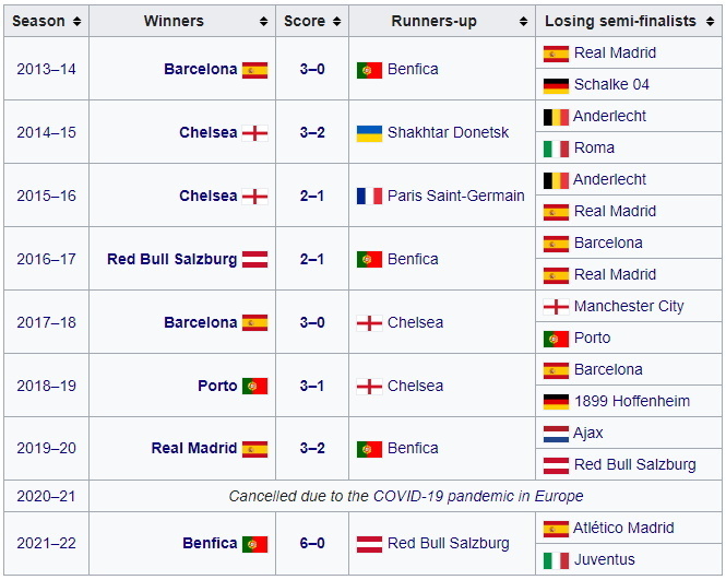 Все финалы Юношеской лиги УЕФА