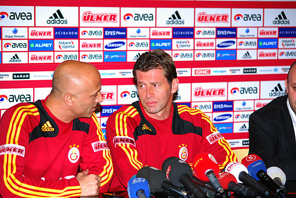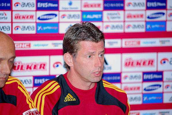 Переводчика с русского на прессухе не было, поэтому тренеру «Галатасарая» также приходилось позировать и делать вид, что понимает по-украински