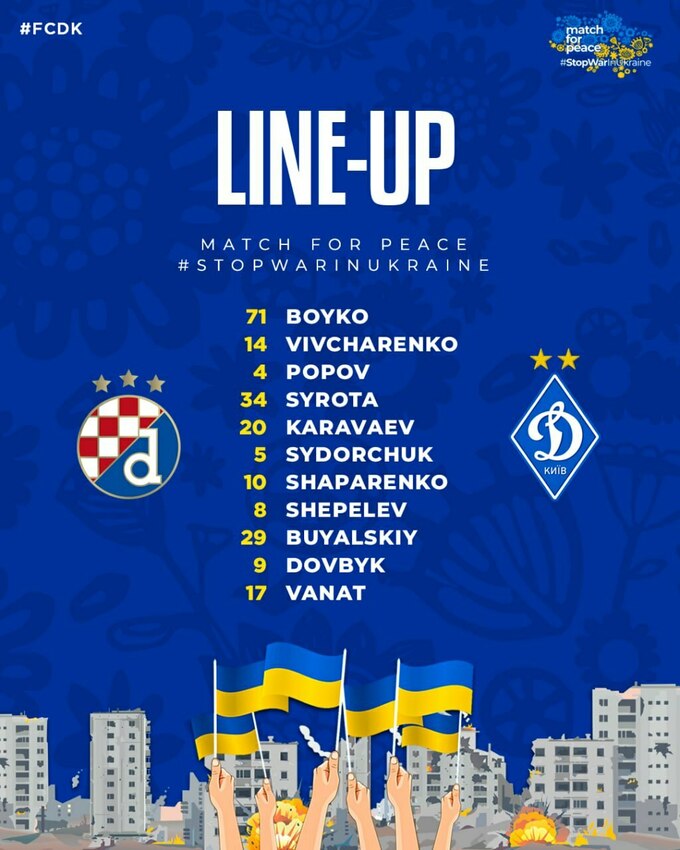 «Динамо» Киев: Бойко, Вивчаренко, Попов, Сирота, Караваев, Сидорчук, Шапаренко, Шепелев, Буяльский, Довбик, Ванат