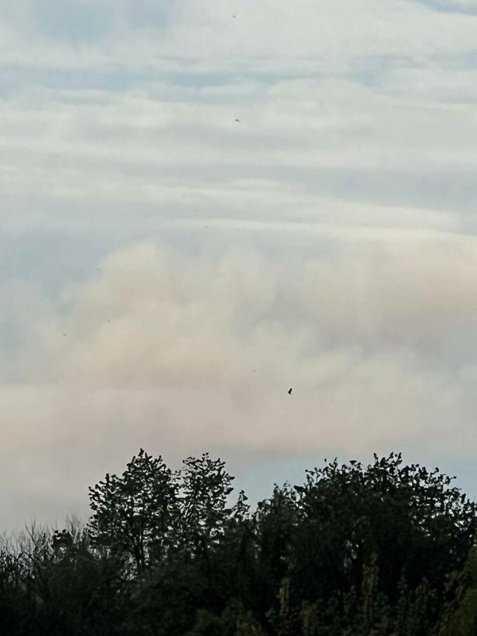 По данным СМИ, в 3–4 км от места пожара хорошо слышны взрывы разной мощности. Судя по тому, что дым поднимается с нескольких точек, очагов пожара несколько.