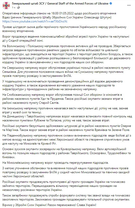 — Володимир Зеленський (@ZelenskyyUa) May 1, 2022