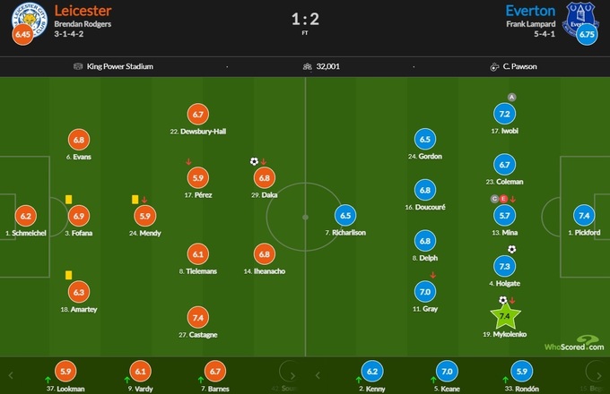 Лучшим в составе «Лестера» признан Тимоти Кастань (7.27).