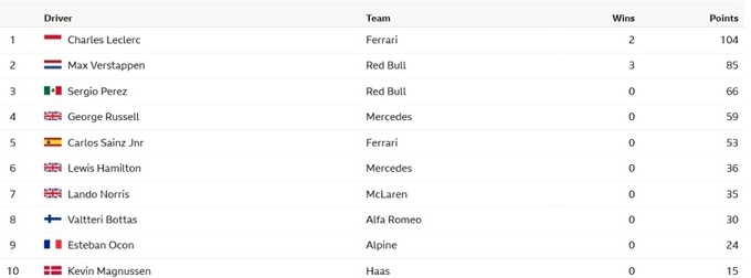 Топ-10: Ферстаппен, Леклер, Сайнс, Перес, Расселл, Хэмилтон, Боттас, Алонсо, Окон, Альбон