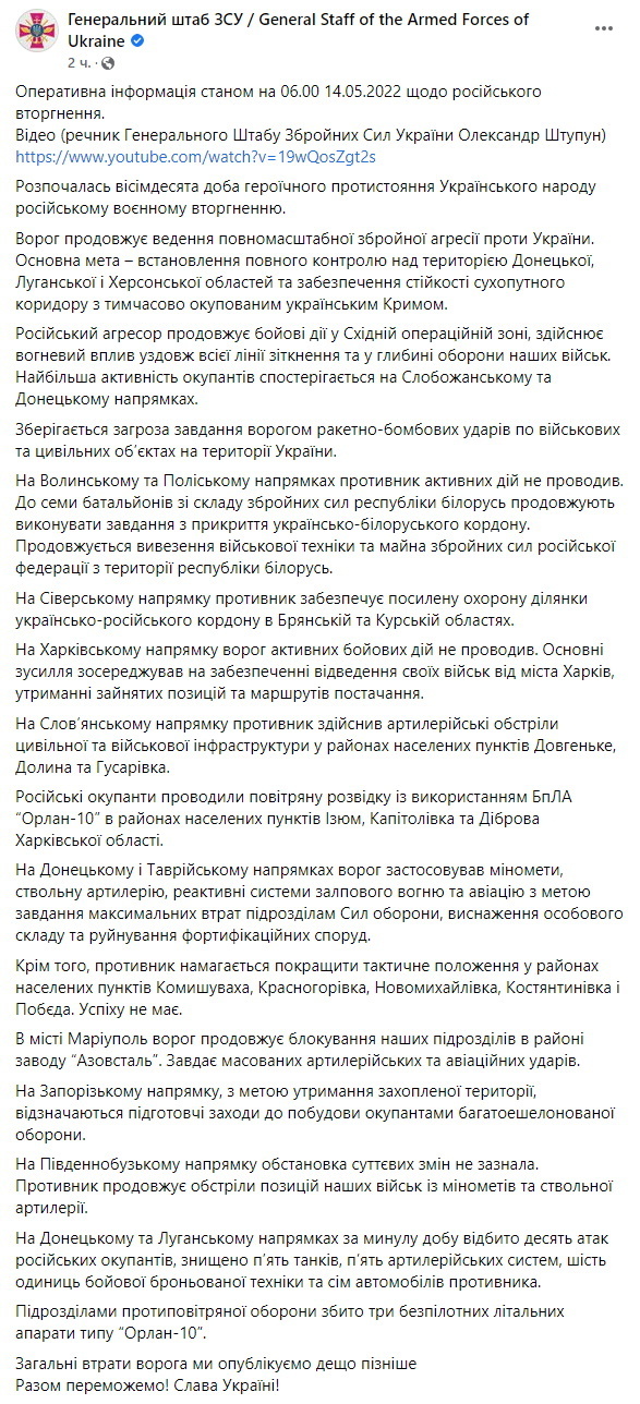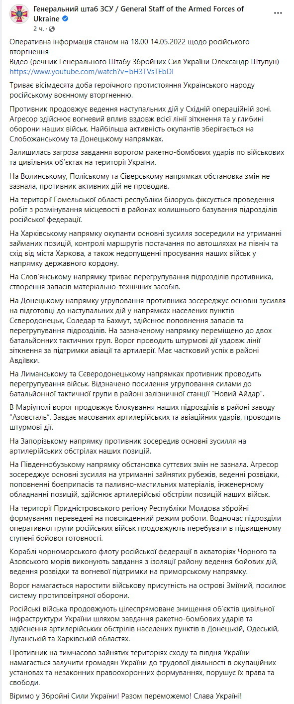 00:00. Начало 80-го дня войны, 14 мая.