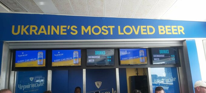Любители пенного напитка могли купить бокал за 6.85 фунта, что в пересчете на наши деньги составляет около 250 грн. Также во время матча можно было увидеть рекламу «Черниговского» на щитах по периметру поля.