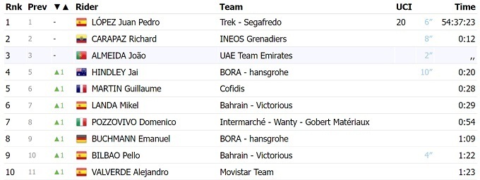 В общем зачете розовую майку лидера сохранил испанец Хуан Педро Лопес из «Trek Sefaredo». Один из главных фаворитов Джиро-2022, Ромен Барде, сегодня сошел с гонки.