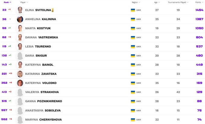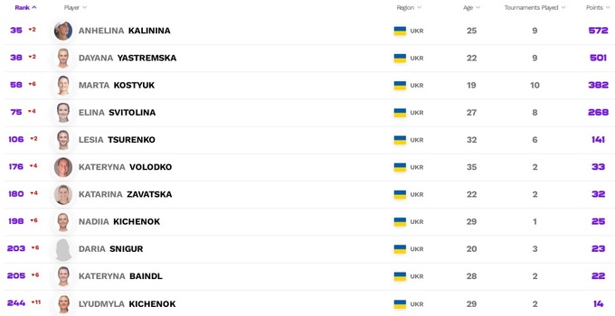 Что касается украинок, то изменения у всех небольшие, довольно много потеряла лишь Катарина Завацкая. Элина Свитолина продолжает оставаться первой ракеткой мира, но это вопрос времени.