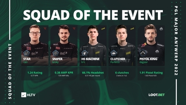 B1t был признан самым точным игроком PGL Major Antwerp 2022 с 66,1% попаданий в голову.