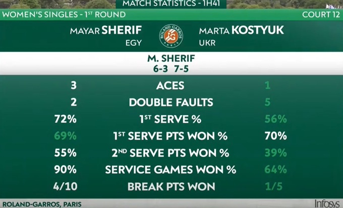 Марта Костюк (Украина) – Майяр Шериф (Египет) – 3:6, 5:7