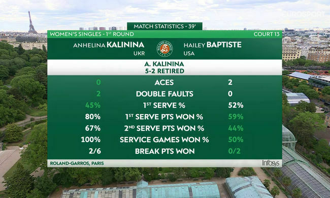 Ангелина Калинина (Украина) – Хейли Баптист (США) – 5:2 (отказ)