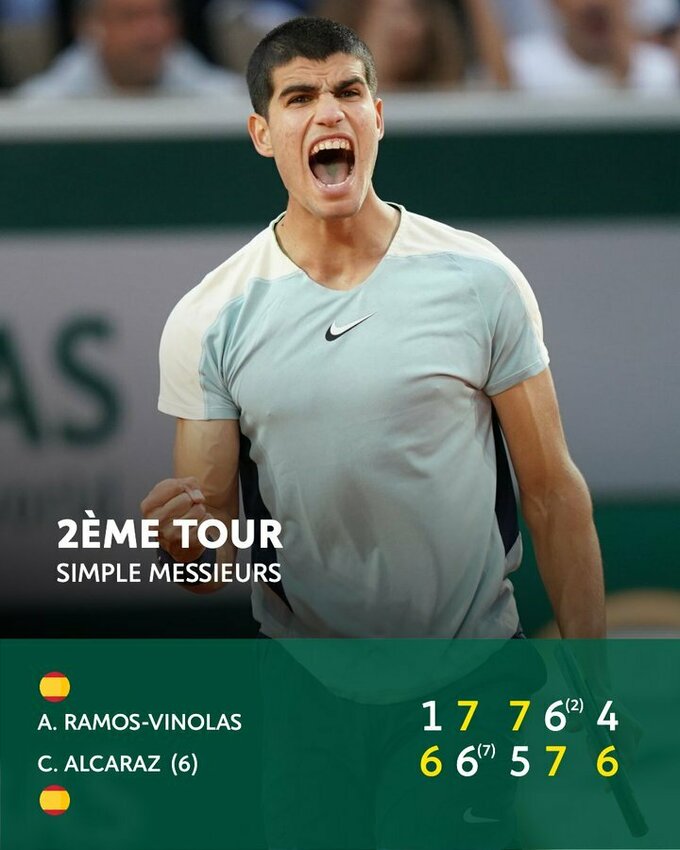 CARLOS ALCARAZ 🤩@rolandgarros #RolandGarros pic.twitter.com/jA9w85JDSb