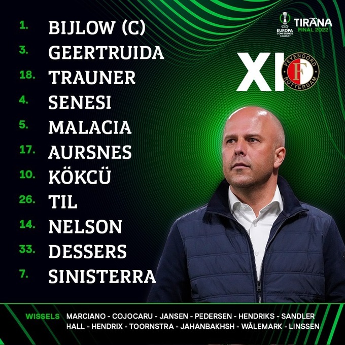 «Фейеноорд»: Бейлов – Гертрейда, Сенези, Маласиа, Синестерра, Оркун Кекчю, Нелсон, Эурснес, Траунер, Тил, Дессерс.