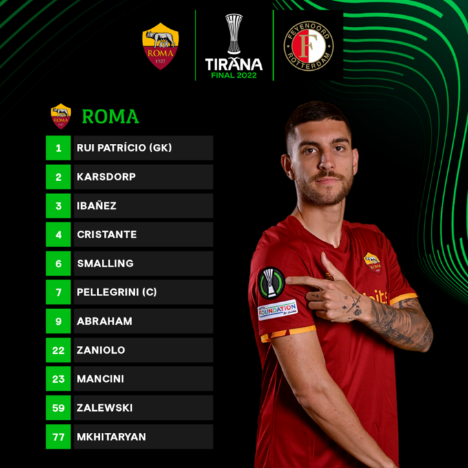 Рома – Фейеноорд. Известны стартовые составы на финал Лиги конференций