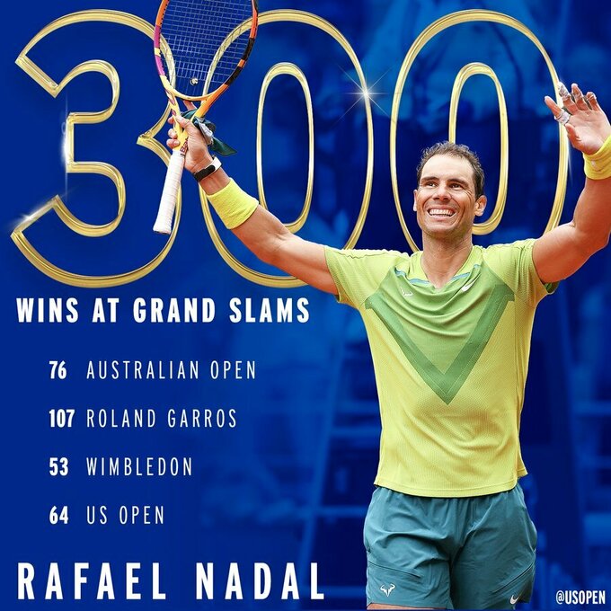 Для Надаля это был 300-й выигранный матч на турнирах Grand Slam. Больше только у Роджера Федерера (369) и Новака Джоковича (325).