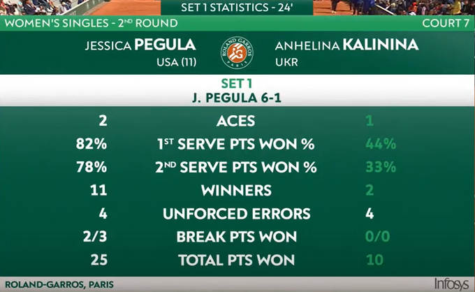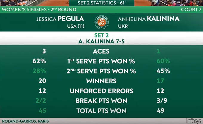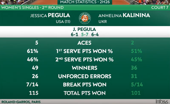 Во втором сете Калинина проигрывала 1:5, но смогла отыграть три матчбола и перевести матч в третью партию. К сожалению, в финальном сете Джессика оказалась сильнее.