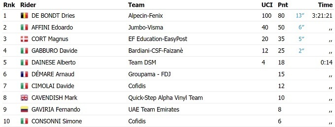 Бельгийский велогонщик команды «Alpecin Fenix» Дрис Де Бондт стал победителем 18-го этапа Джиро д’Италия-2022. В финишном спринте из отрыва он опередил Эдоаржо Аффини и Магнуса Корта.