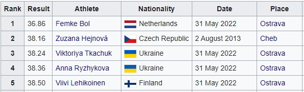 - 1. Фемке Бол (Нидерланды) – 36.86 сек (мировой рекорд)