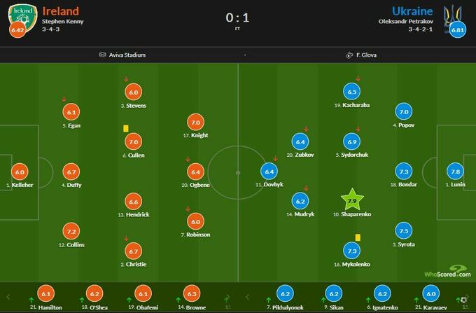 Шапаренко стал лучшим игроком матча Ирландия – Украина по версии Whoscored