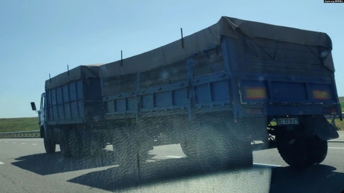 На трассе Таврида на въезде в оккупированную Керчь заметили колонну из четырех грузовых автомобилей с украинскими номерами. К каждому из них были подключены прицепы. Кузова грузовиков и прицепов были накрыты тентами. Номерные знаки начинались с букв ВТ, соответствующих Херсонской области.
