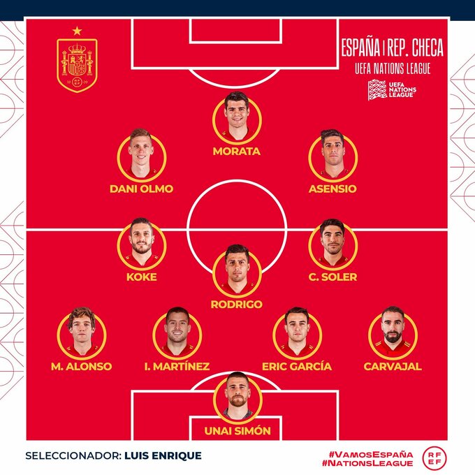 Вечером – два поединка в Лиге A: Испания – Чехия, Швейцария – Португалия.