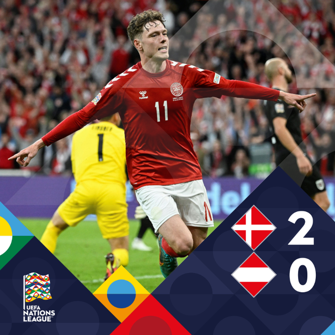 Дания дома уверенно обыграла Австрию (2:0) и лидирует в группе A1.