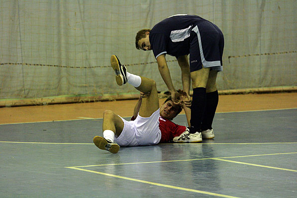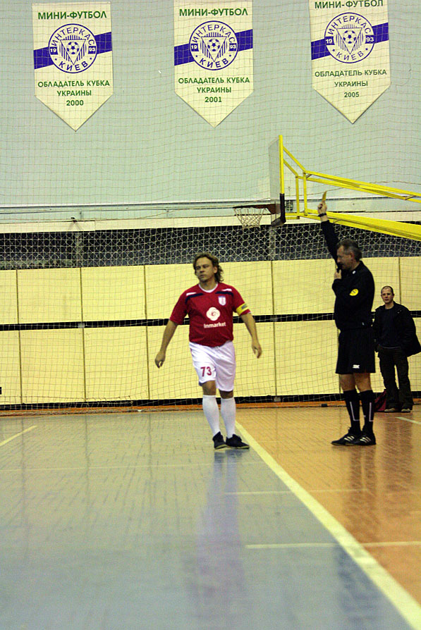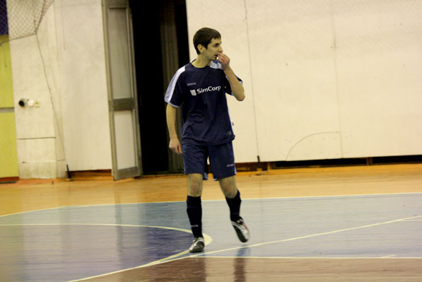 Впрочем дело не в этом, а в том, что первая же контратака «SimCorp» на 5-й минуте выдалась результативно. Первый, как и все остальные мячи в матче команда программистов провела, разыграв комбинацию с выходом 2 нападающих в одного защитника. И тут даже мастерство Дмитрия Тарана не помогло. Итак на 5-й минуте отличился Кузьменко. Впрочем и второй гол, также на счету одного из лидеров команды. На 16-й минуте счет стал 2:0 в пользу «SimCorp». Стоит напомнить, что опыт команды журналистов, ушедшей на перерыв в матче против «Маэстро» с тем же счетом, команда программистов переняла и не позволила себе расслабиться ни на секунду. Хотя моменты у артистов были, но с реализацией в этот день что-то случилось. Появилась нервозность, а артисты люди амбициозные, сильные внутренее и нелюбящие проигрывать. Так в одном из эпизодов Андрей Федоров при вводе аута мяч установил на линию верно, но при вводе мяча в игру, заступил на поле. Но Андрею повезло, громкие разговоры с арбитром не привели к ненужному предупреждению. Впрочем без желтых карточек в «Маэстро» не обошлось - Фоззи нарушил правила замены, выйдя на поле в неположенном месте. А такие вещи в Футзальной Премьер-лиге караются моментально.