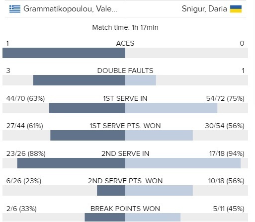 Дарья Снигур (Украина) – Валентини Грамматикопулу (Греция) – 6:3, 6:3