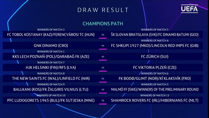 Жеребьевка второго отборочного раунда (Q2) Лиги чемпионов 2022/23 состоялась в швейцарском Ньоне 15 июня.