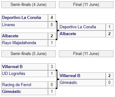 Вместе с «Альбасете» в классе (по итогам плей-офф) повысился «Вильярреал» B, обыгравший в решающем матче «Химнастик» Таррагона (2:0).