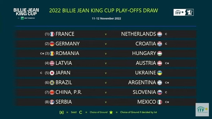 16 июня в Лондоне состоялась жеребьевка матчей плей-офф Кубка Билли Джин Кинг, в котором примет участие и сборная Украины.