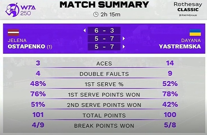 🇺🇦 @D_Yastremska comes from a set down to take out top seed Ostapenko and reach the #RothesayClassic quarterfinals! pic.twitter.com/KVoz4Muppt
