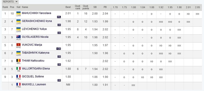 Ярослава выиграла с результатом 2.01 м (лучший результат сезона). Геращенко показала результат 1.98 м, а Левченко - 1.95 м.