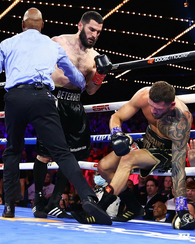 Beterbiev landed the knockdown in the closing seconds of round one 😳 #BeterbievSmith pic.twitter.com/j32b6DUnog